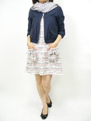 赤×ネイビーのボーダー柄がキュートなワンピに。コンパクトなブルゾンを羽織って一足早いマリン気分を味わって!フェミニン度90%、アクティブ度10%。