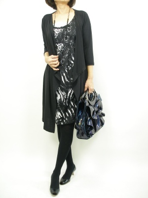 重ね着風の技ありワンピースは、シンプルなコーディネートでも十分映えます!スタイリッシュ度90%、エレガンス度10%。