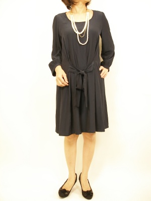 ストンとしたシルエットのワンピースはアクセサリー次第でフォーマルにも!エレガンス度60%、フェミニン度405.