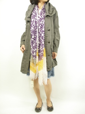 モッズコートやストールでルーズな着こなしの時は、ボトムをスカートにして軽く仕上げて!アクティブ度100%。