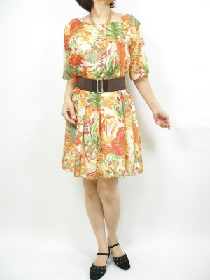 大きな花柄。そして綺麗な色。元気なオレンジ色で春を満喫してみては!エレガンス度80%、フェミニン度20%。