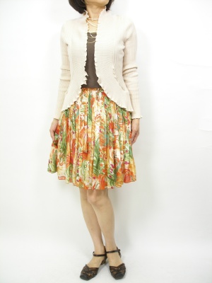 ベアトップワンピはボレロを羽織ると落ち着いた雰囲気に。派手柄スカートなら取り入れやすいですよ!エレガンス度80%、スタイリッシュ度20%。