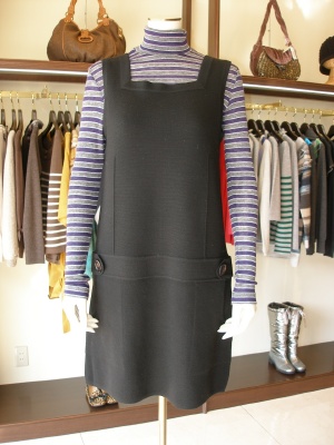 ニットワンピース。タイツは黒かパープルを・・。ブーティで可愛くしてみました!フェミニン度80%、スタイリッシュ度20%。