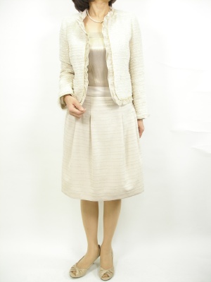 入学式には明るいベージュで優しくまとめて。インナーのゴールドが華やかさを添えます!エレガンス度70%、フェミニン度30%。
