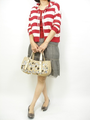 元気な赤ボーダーはナチュラルスカートと合わせてもカワイイ。ちょっと夏を感じるスタイルです!フェミニン度60%、アクティブ度40%。