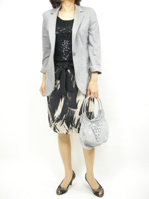 一見ベーシックなコーディネート。でもよく見るとひと癖ありが、さりげなくカッコイイ!スタイリッシュ度80%、エレガンス度20%。
