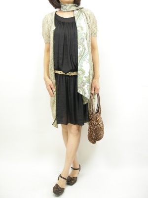 ドレープたっぷりのワンピースに、洗い網目のニットをオン。素材MIXがオシャレのキーワードです!エレガンス度60%、スタイリッシュ度40%。