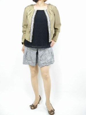 まるいフォルムがカワイイジャケットには、ショート丈ボトムがバランス良い。シックな色使いで大人可愛くまとめて!フェミニン度80%、スタイリッシュ度20%。