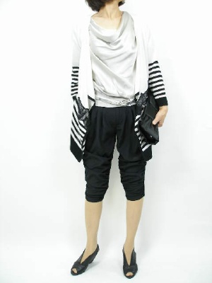 羽織りものの定番になりつつあるドレープカーディ。サルエルパンツともバランス良くまとまります!スタイリッシュ度70%、アクティブ度30%。
