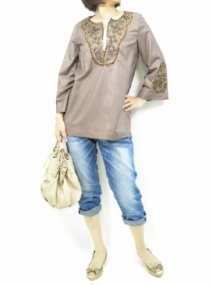 エスニック&ナチュラルなチュニック。ボリューム控えめな大人デザインなので、ボーイフレンドデニムと合わせても上品です!アクティブ度90%、フェミニン度10%。
