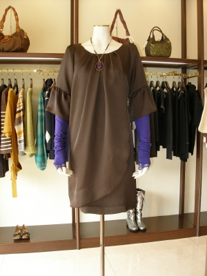 少しだけパープルを聞かせると、ブラウンがさらに映えます。一枚で着てアクセントをつければフォーマルに!フェミニン度60%、エレガンス度40%。