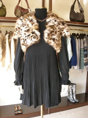 トレンドのアニマル柄はワンぴを合わせると上品。リブタイツとパンプスでレトロに仕上げて!エレガンス度80%、フェミニン度20%。