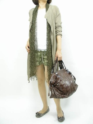 この夏チャレンジしたいショートパンツ。ロングカーデとストールでちょっと隠せば大人っぽく着こなせます!アクティブ度90%、フェミニン度10%。