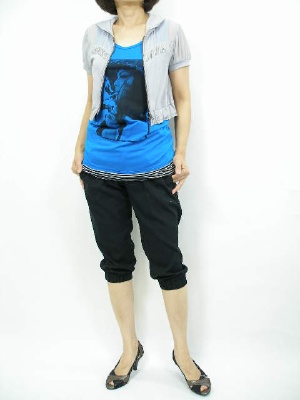 サルエルパンツはトップスをアンバランスに着崩します。ヒールを合わせると、さらに大人の表情になります!スタイリッシュ度90%、アクティブ度10%。