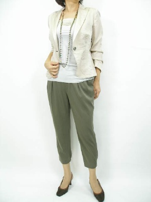 通勤にもデザインパンツ投入でトレンド感を。テーラードジャケットとも相性が良いので意外と使えるアイテムですよ!スタイリッシュ度90%、エレガンス度10%。
