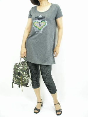 キャサリンハーネルのTシャツは、キラキラの香水の瓶がキュート。ヒップを隠してくれるAラインシルエットも嬉しいですね!アクティブ度90%、フェミニン度10%。