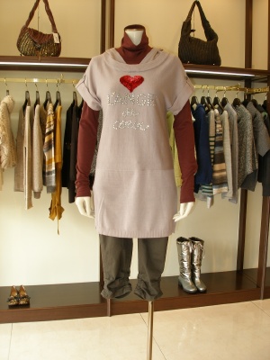 スパンコールのハートがキュートなニットチュニック。タートルやロンTと合わせて!アクティブ度100%。