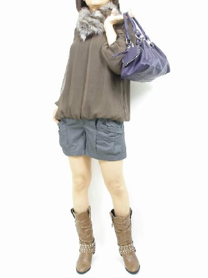 ゆったりブラウスでランチも楽しく過ごせます。ブーツとパンツで引き締めて!フェミニン度80%、スタイリッシュ度20%。