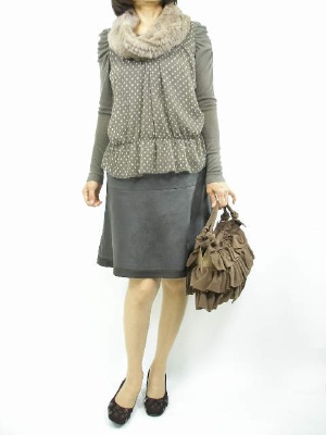 ブラウン系でまとめたスタイルも今年のトレンドです。ファーを使うと華やかに!エレガンス度70%、フェミニン度30%。