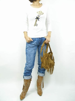行事には欠かせないデニムコーディネート。カットソー一枚でオシャレになるのは、やっぱりワンポイントのカットソーがお役立ちですね!アクティブ度100%。