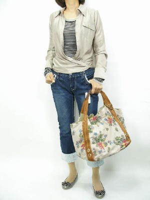 ボーイズライクなデニムスタイルもカシュクールシャツの投入で大人っぽいイメージに!アクティブ度80%、スタイリッシュ度20%。