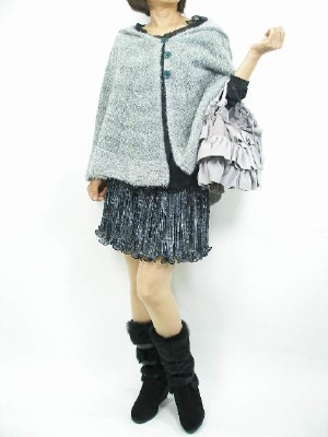 ポンチョとファーブーツの組合せは今年のトレンドですね。押さえた色使いなら大人の女性にも取り入れやすいですね!フェミニン度80%、スタイリッシュ度20%。