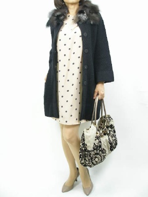 ニットコートの下は可愛いワンピを合わせて軽さをプラス。あくまで綺麗目にこだわりました!エレガンス度90%、フェミニン度10%。