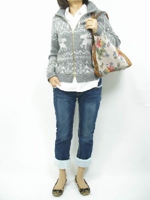 今年はノルディック柄が豊富です。白シャツを合わせてスッキリさせました!アクティブ度100%。