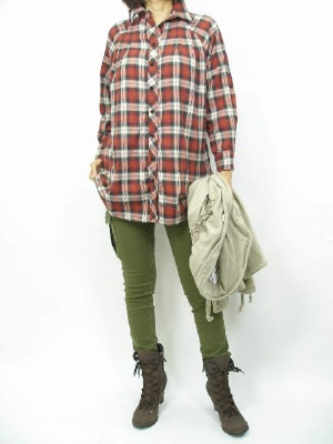 流行りのカーゴレギンス。たっぷりしたシャツで細身のパンツを強調して秋のアウトドアに如何でしょう!アクティブ度90%、スタイリッシュ度10%。