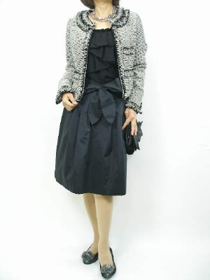 デコラティブなアイテムを黒でまとめあげて華やかに。これからの季節七五三などの行事にピッタリです!エレガンス度80%、フェミニン度20%。