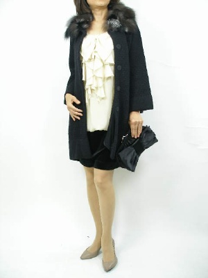 ノースリーブのワンピースはお呼ばれなどちょっとした席にピッタリ。ファー付きのニットコートならゴージャスさがプラスされますね!エレガンス度100%。