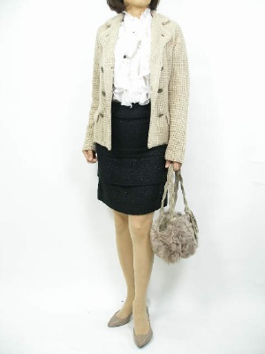ブラウスとタイトスカートのキリリ感をニットコートで少し緩めて。キメすぎないのが今の気分です!スタイリッシュ度90%、アクティブ度10%