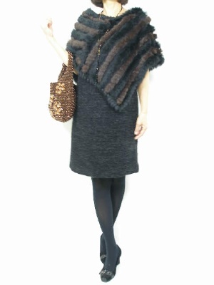シックなお出かけワンピースにファーポンチョをプラスして華やかに!エレガンス度80%、スタイリッシュ度20%。