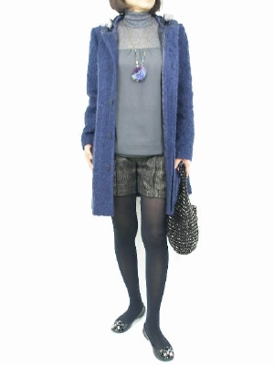 襟元がキュートなコートの中はショートパンツで軽快に!フェミニン度100%。