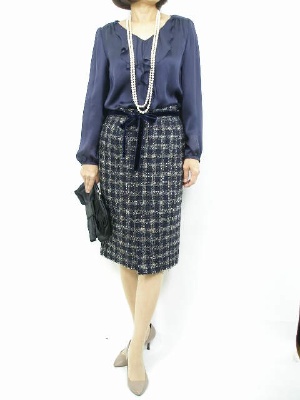 シルクのブラウスとタイトなスカートでレトロシックなお出かけスタイルに!エレガンス度100%。