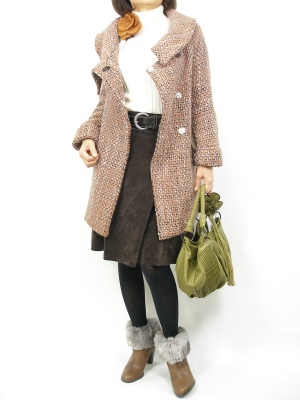 タートルとスカートにツイードのコートを羽織ればレトロスタイルの出来上がりです!フェミニン度100%。