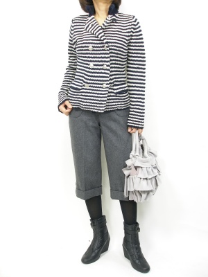 あったか素材で作る冬のマリン。紺×白ボーダーもニットだと優しい雰囲気です!アクティブ度80%、エレガンス度20%。
