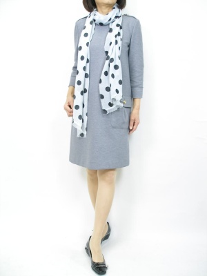 サックワンピはこのままでも勿論オシャレですが、ワンポイントでストールをあしらうとちょっとしたお出かけにもなりますね!エレガンス度80%、スタイリッシュ度20%。