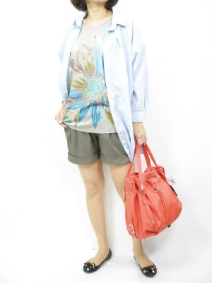 ショートパンツはやっぱりトップスをゆるシルエットでまとめるとバランスが取れますね!アクティブ度80%、スタイリッシュ度20%。