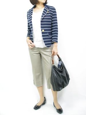 ショートパンツをジャケットオンでお出かけ着に格上げして。春の軽やかさを演出!スタイリッシュ度80%、エレガンス度20%。