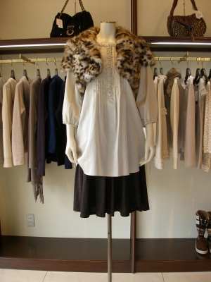 アニマル柄もフェミニンに着こなせば優しい表情に。パーティに出かけたくなりますね!フェミニン度90%、エレガンス度10%。