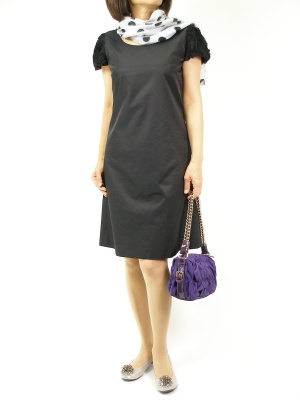 正統派ブラックワンピをドットストールで可愛くカジュアルダウン。改まり過ぎないのが良いですね!エレガンス度90%、フェミニン度10%。