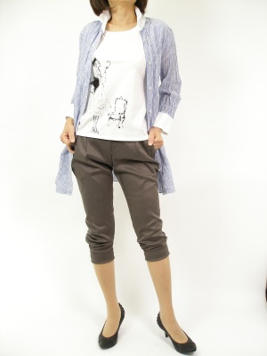ロングシャツは羽織りとしても大活躍。パンツとの相性は○です!スタイリッシュ度80%、フェミニン度20%。