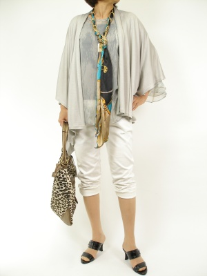 流れるラインが女性らしい組合せ。今年のチノは白で決まりですね!スタイリッシュ度90%、アクティブ度10%。