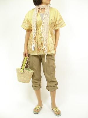 コットン素材で涼しげなゆるトップス。控えめプリントが大人カジュアル感を引き出します!アクティブ度90%、スタイリッシュ度10%。