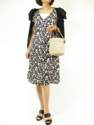 黒でまとめたシックなコーディ。さりげなく肩にかけたカーディが女らしさを表現してくれますね!エレガンス度80%、スタイリッシュ度20%。