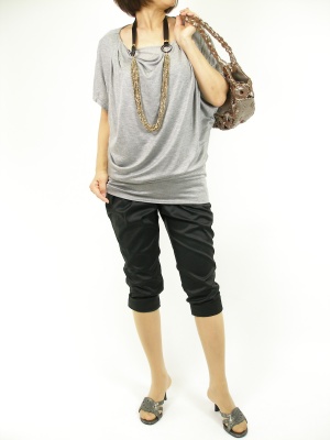 ドルマンカットソーは嫌いなラインが大切。黒の上品パンツでモノトーンコーディ!スタイリッシュ度90%、エレガンス度10%。