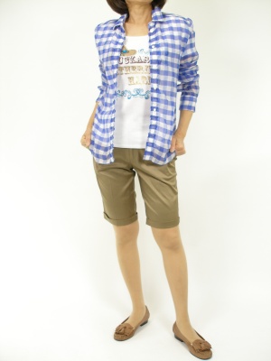 羽織として便利な透け感のあるシャツでアクティブに。夏のリゾートに使えるコーディです!アクティブ度90%、フェミニン度10%。