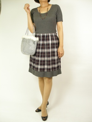 さっと着られる楽チンワンピですが、小物使いでとってもエレガント。急なお出かけにも対応できます!エレガンス度70%、アクティブ度30%。