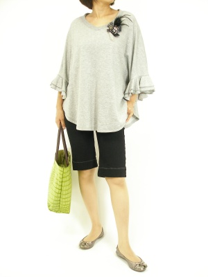 ポンチョ型カットソーの進化版は、少しエレガントになりました。ショートパンツでカジュアルさをUP!アクティブ度80%、フェミニン度20%。